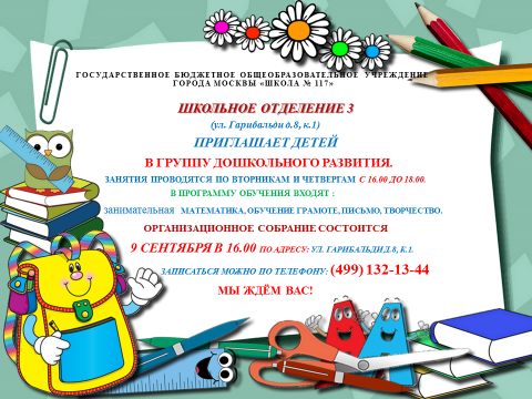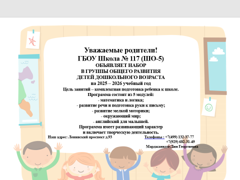 Записаться в группы раннего развития школьного корпуса №5 можно по телефону:+7 (499) 132-77-97,