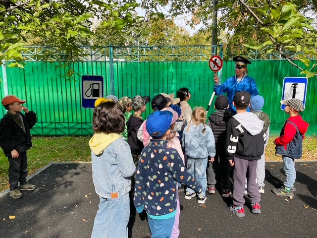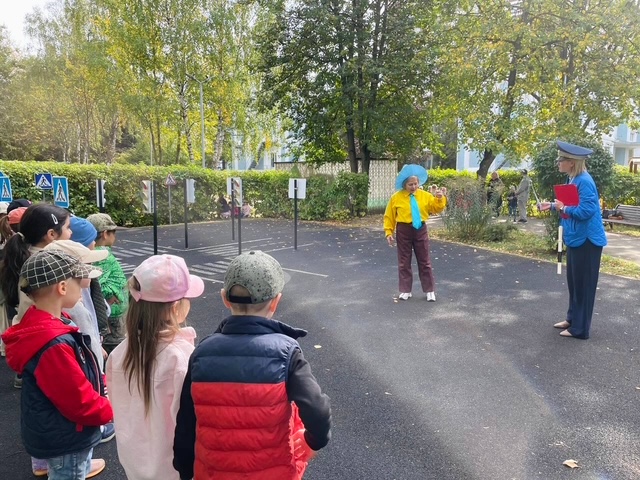 Вместе с инспектором ГИБДД и озорным Незнайкой дошколята вспомнили основные правила дорожного движения, дорожные знаки и проверили себя на практике.
