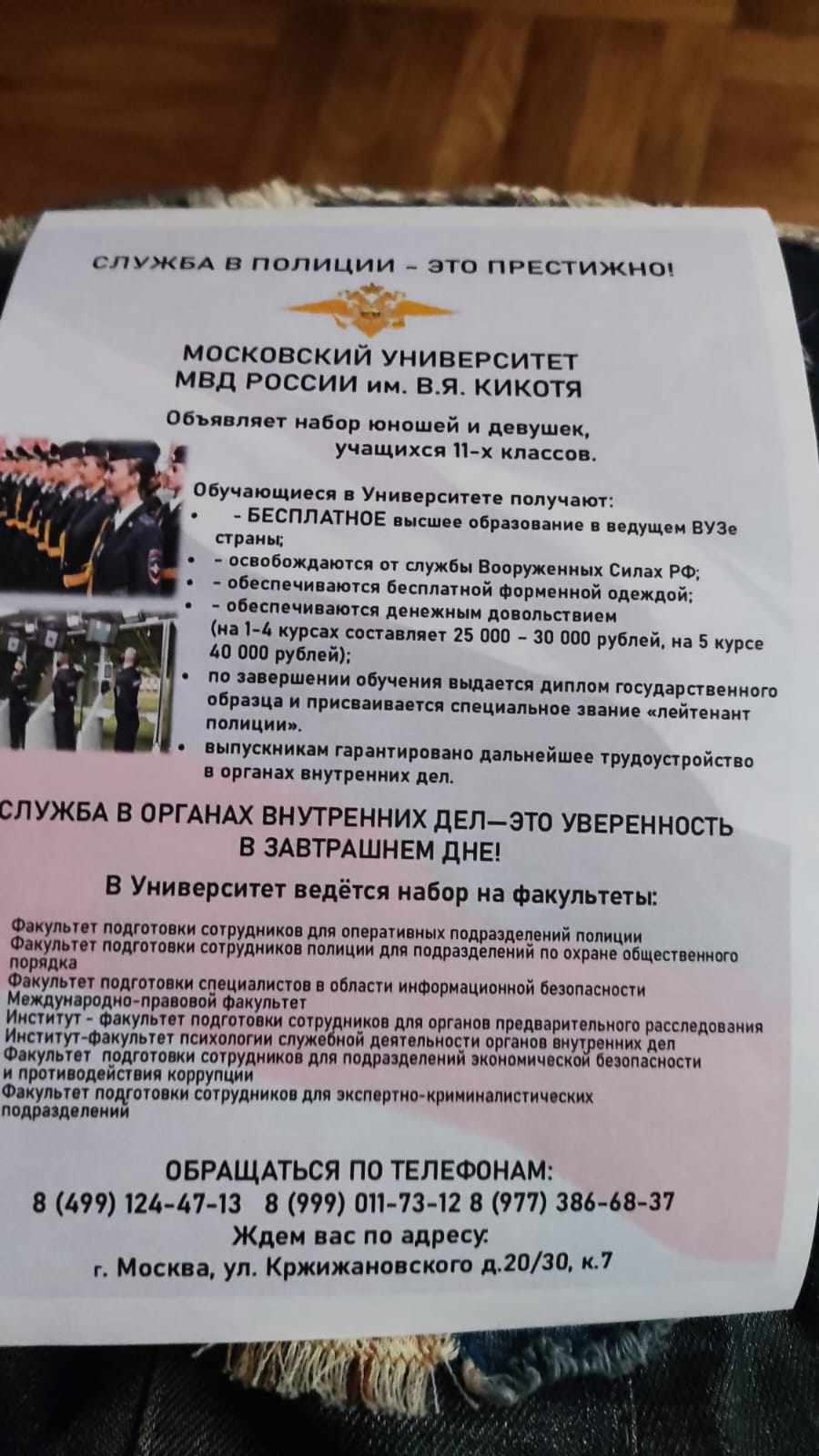 24 октября группа обучащихся 10 "А" посетила УВД России в ЮЗАО г. Москвы и приняла участие в Дне Открытых Дверей Московского Университета МВД России имени В.Я. Кикотя.