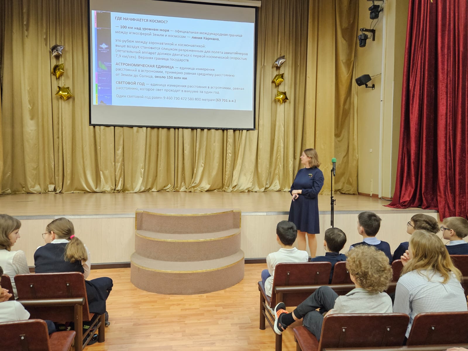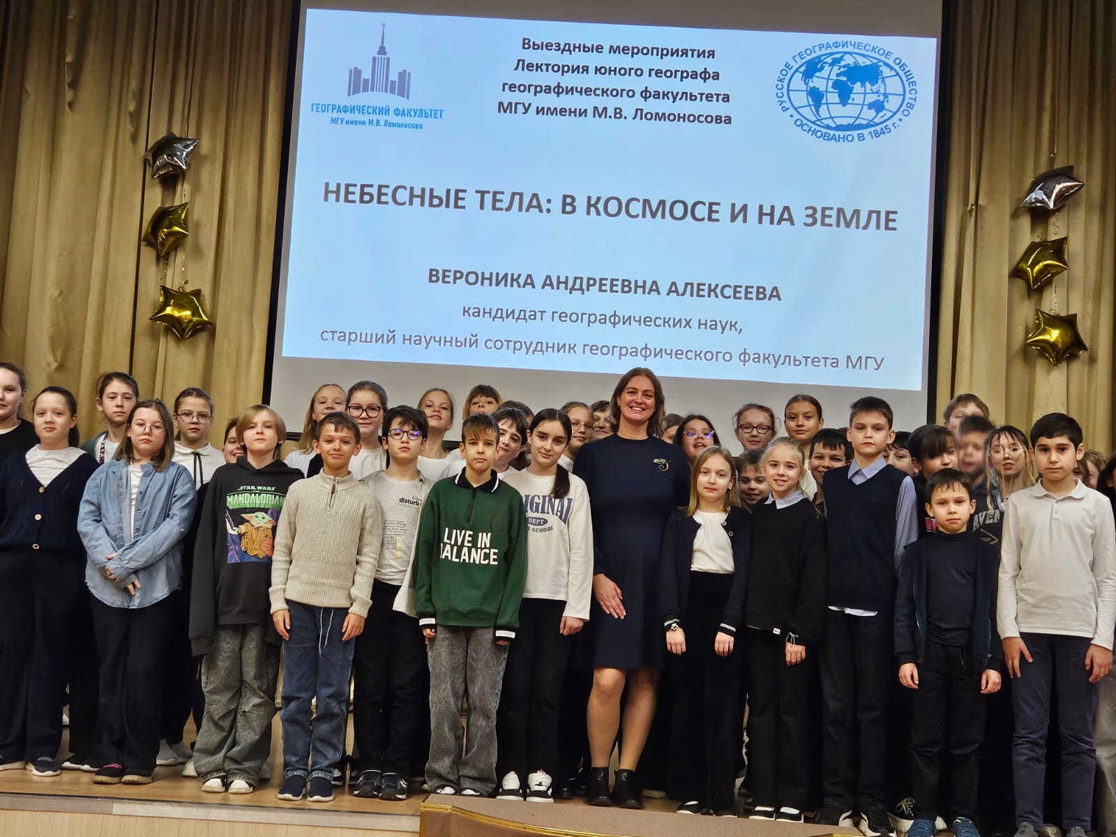 «Небесные тела: в космосе и на Земле»… Увлекательная лекция с таким названием состоялась 18 ноября 2025 г. для параллели 5-х классов ГБОУ Школа № 117. Занятие прошло в рамках выездных мероприятий Лектория юного географа географического факультета МГУ имени М.В. Ломоносова, организуемых совместно с Русским географическим обществом.